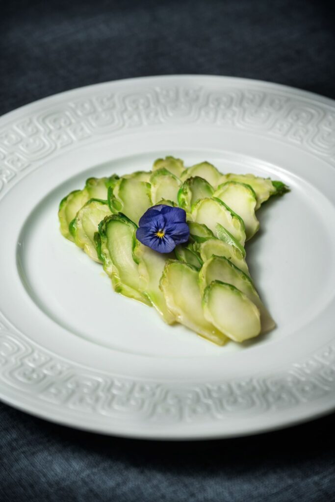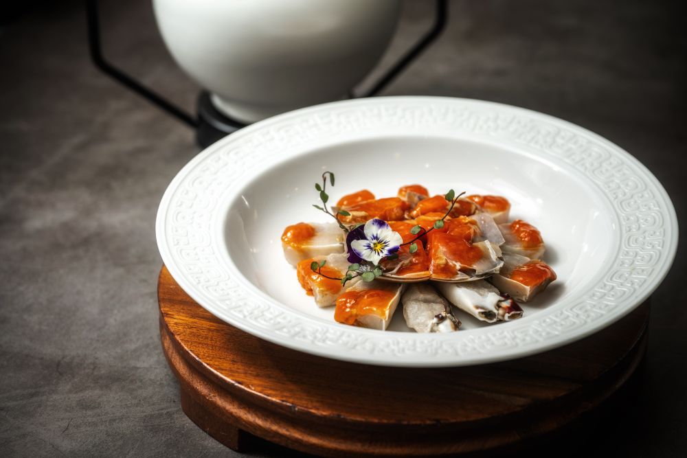 甬府推出的全新冬季晚市套餐價錢為每位HK$1,398+10%,十三道菜晚市套餐僅於主餐廳供應,其中七款精緻菜餚以時令優質食材烹調而成,打造極致的晚宴體驗。總廚劉震設計了一系列精美頭盤,包括招牌菜式生醃大閘蟹,蟹黃絲滑,調味恰到好處;客人亦可另選魚子醬配甜豌豆魚餅撻。接著是繡球菌拌海蜇及肉汁油豆腐,最後是淋上清香芝麻油的香油兒菜。