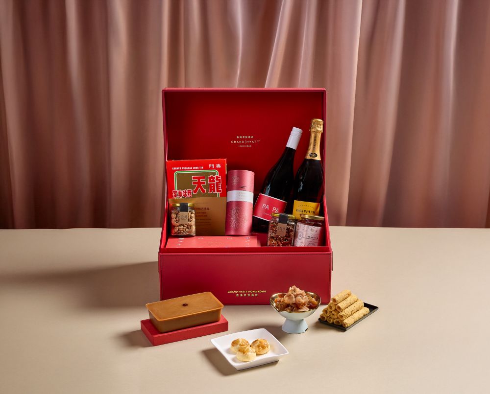今年,「君悅」及「喜悅」禮籃包括獨家港灣壹號聯乘龍天燒臘臘腸潤腸精選禮盒,並搭配精心挑選的美酒及佳節美食,如法國名牌香檳紅酒、頂級優質海味、港灣壹號秘製X.O.醬、精選茗茶及多款賀年食品等,帶來矜貴美食體驗。