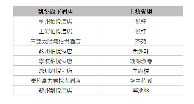 凱悅酒店集團8家餐廳入選2026《黑珍珠餐廳指南》
